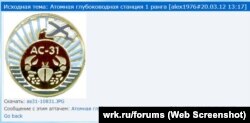 На фото ниже – значок с символикой "Лошарика”, в центре – все тот же геральдический краб и одно из обозначений проекта, АС-31.