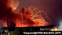Склад загорелся в ночь на 24 августа после, как утверждается, атаки украинских беспилотников. В сообщении пресс-службы регионального правительства отмечалось, что к утру 25 воскресенья "прекратилась активная фаза детонации взрывоопасных объектов", и на месте происшествия начали работать группы разминирования. Таким образом, взрывы на складе продолжались больше суток, отмечает Сибирь.Реалии.
